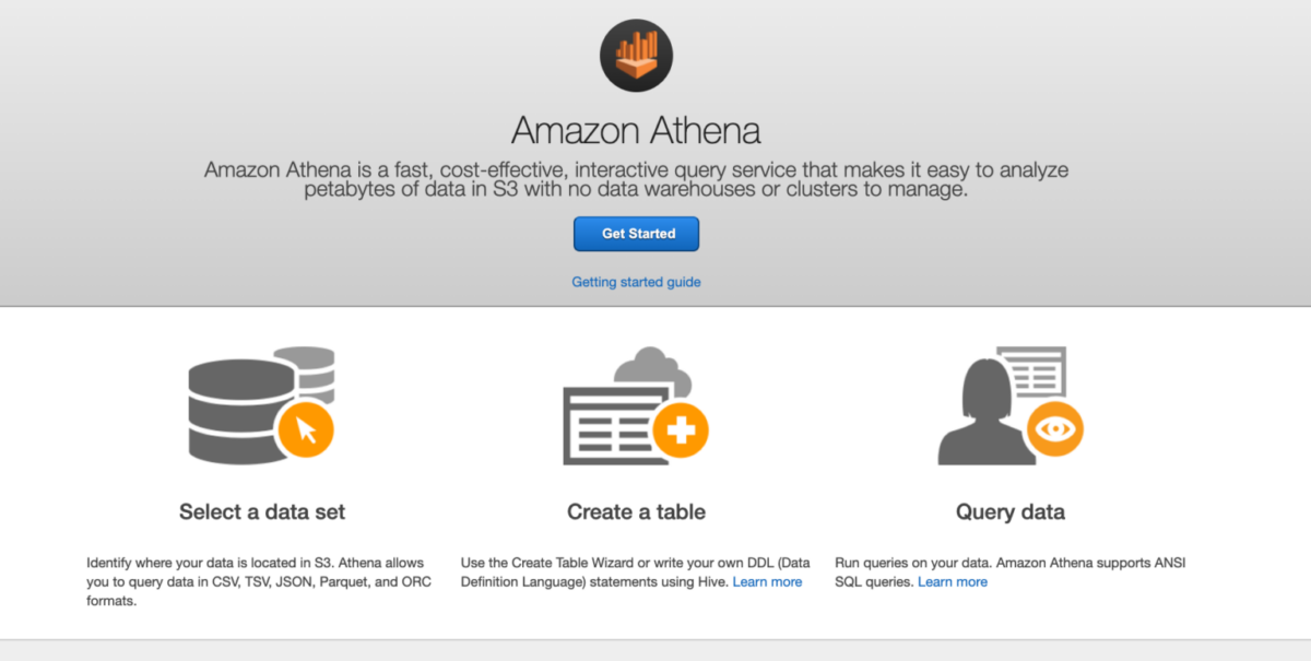 Athenaの操作は簡単で、Amazon S3 内のデータを指定して、標準データフォーマットを使用して、データ処理をスタートするだけで、大型のデータであってもスピーディーに結果が出てきます。Athenaのメリット