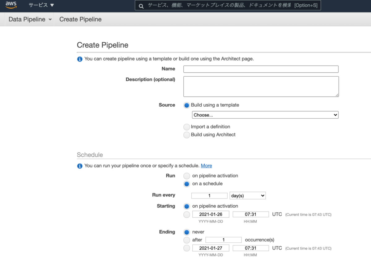 AWS Data Pipeline にはパイプラインテンプレートのライブラリが用意されており、テンプレートを使う事で複雑なパイプラインの作成も問題ありません。たとえば、規則的なログファイルの処理、Amazon S3 へのデータのアーカイブ、SQL クエリの定期的な実行などができます。