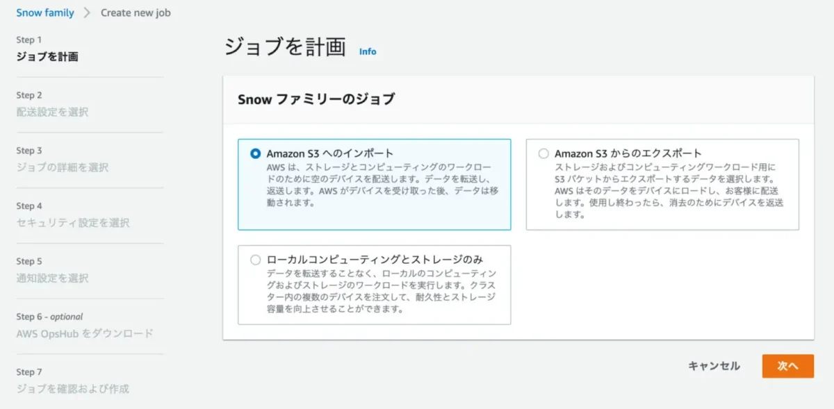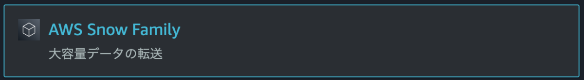AWS Snowファミリー とはファミリー専用ハードウェアを使用してAWS上に大量のデータを送付するサービスです。