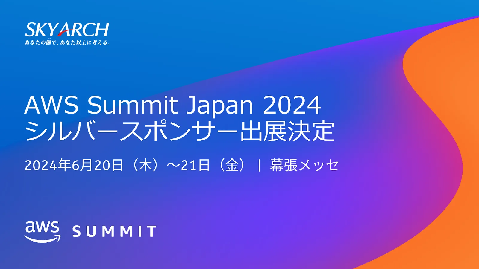 2024年6月20日(木)・21日(金)に、幕張メッセにて開催される日本最大の “AWS を学ぶイベント” 「AWS Summit Japan 2024」に Silver スポンサーとして出展します。