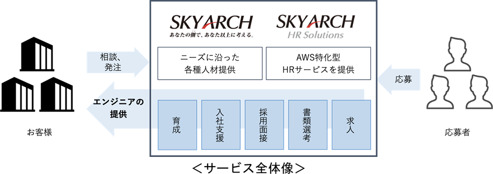 そこでスカイアーチネットワークスは、2020年に日本初(※2)となるアマゾン ウェブ サービス(以下、AWS)のエンジニアに特化した、人材紹介及び技術提供サービスを提供するスカイアーチHRソリューションズを設立いたしました。