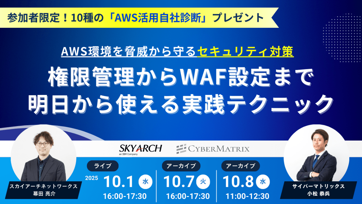 - 【スカイアーチセッション】AWS環境におけるセキュリティの基本と実践 – セキュリティインシデントから学ぶ防御策