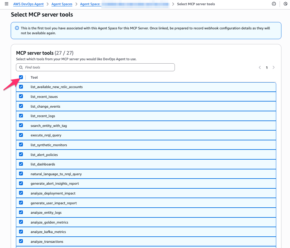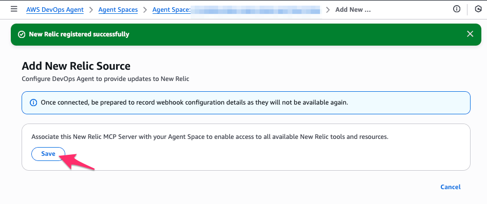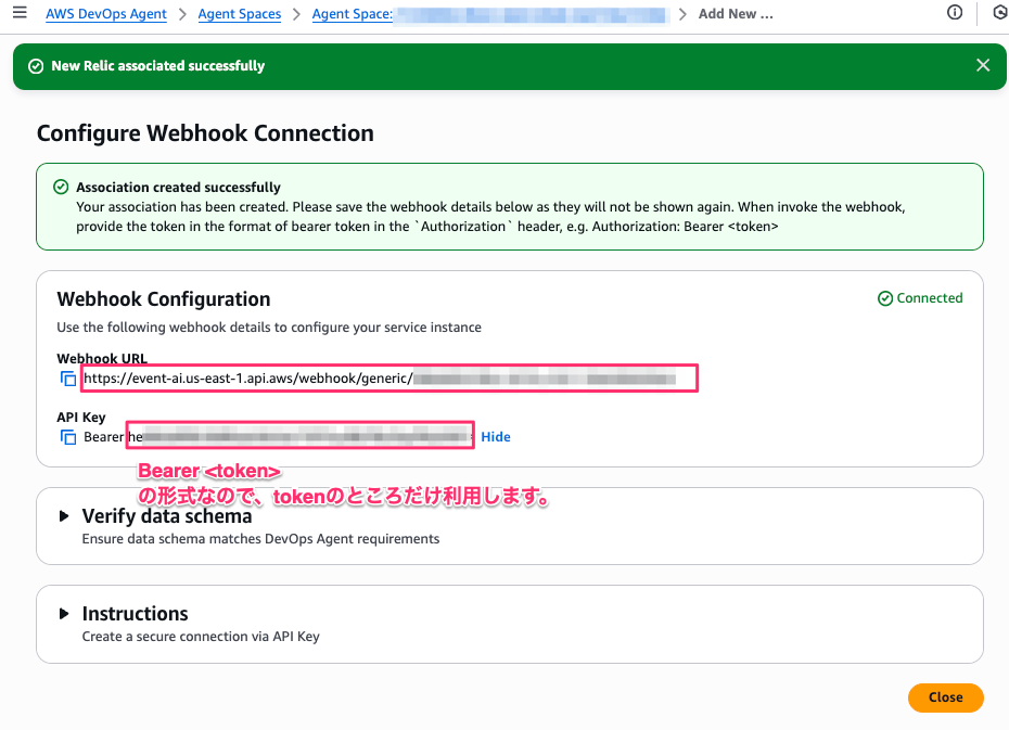 ※「New Relicの障害通知先にAWS DevOps Agentを追加」の章では詳しく手順記載していますので、必要であればそちら参考にしてください。