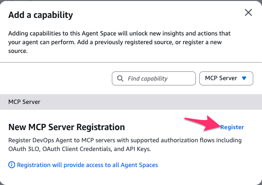 「MCP Server」の中にある、「New MCP Server Registration」を「Register」します。