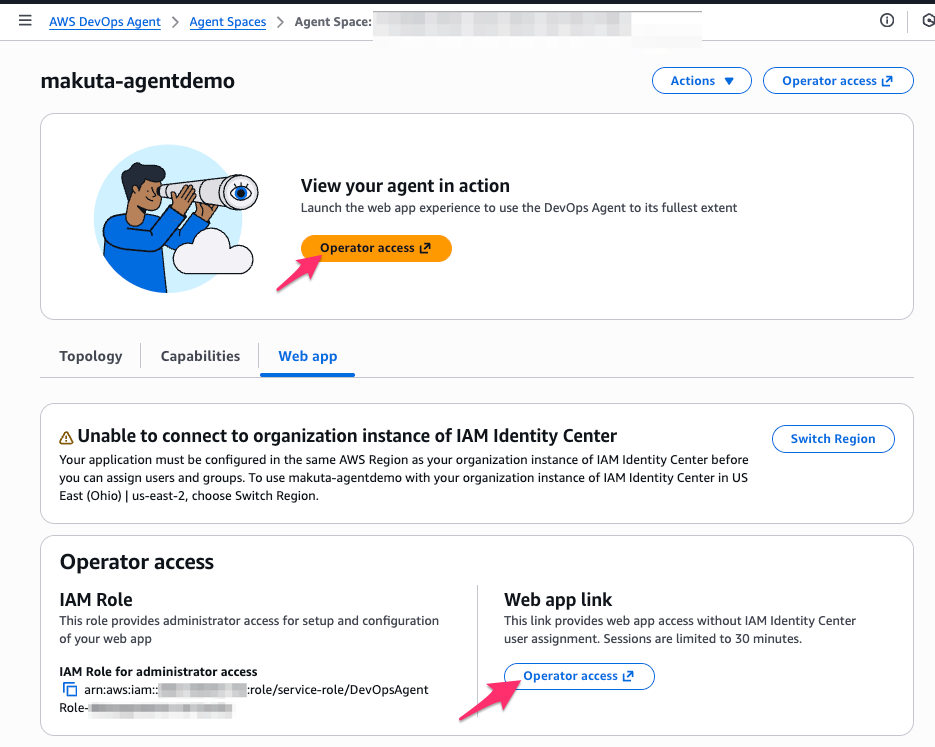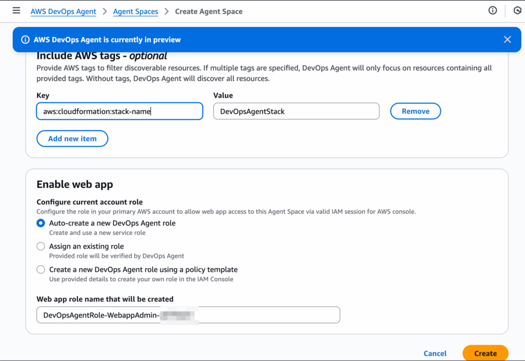 こちらも自動作成されるDevOps Agentロールを利用します。