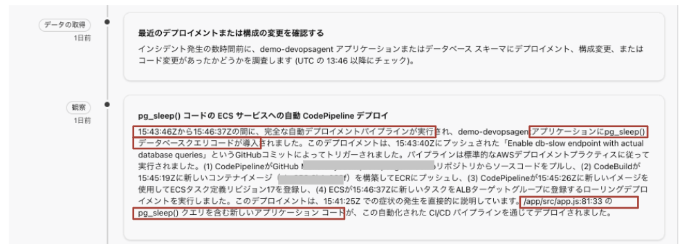 本ブログの最下部に、DevOps Agentによる調査の全容のスクリーンショットを添付しています。解像度が荒く申し訳ないですがご参考になれば幸いです。