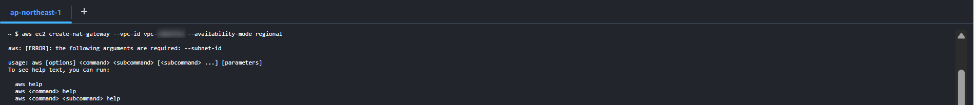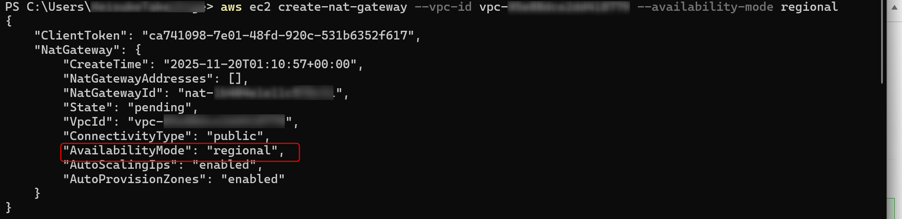 aws ec2 create-nat-gateway --vpc-id vpc-** --availability-mode regional**