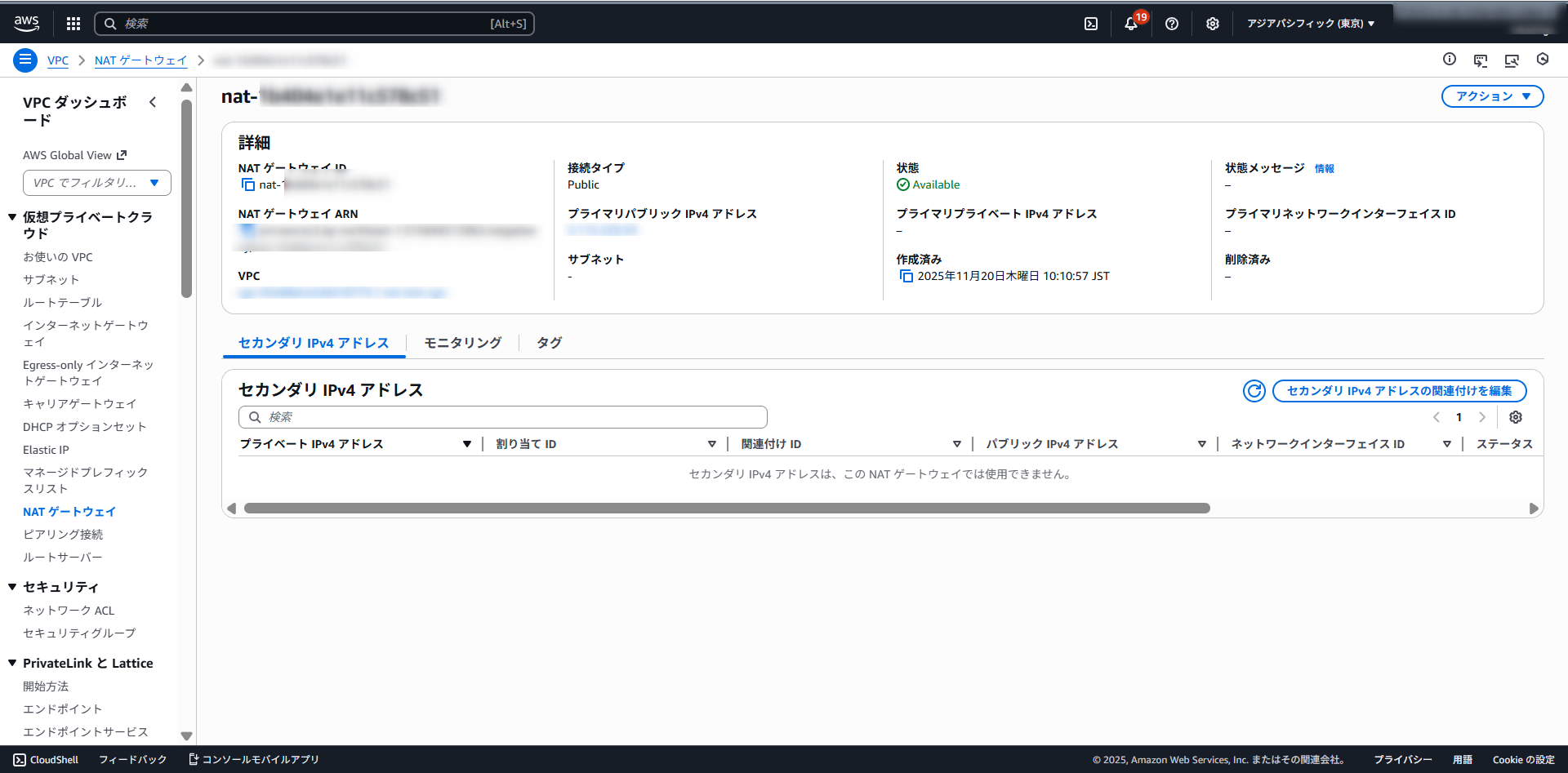 VPC2025年11月20日リージョナルに対応したNATGWを触ってみた