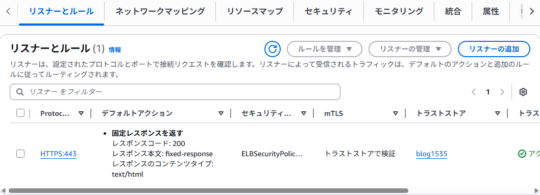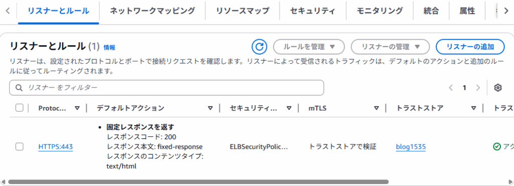 作成したトラストストアはロードバランサーのリスナーに関連付けておきます。