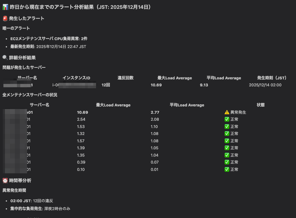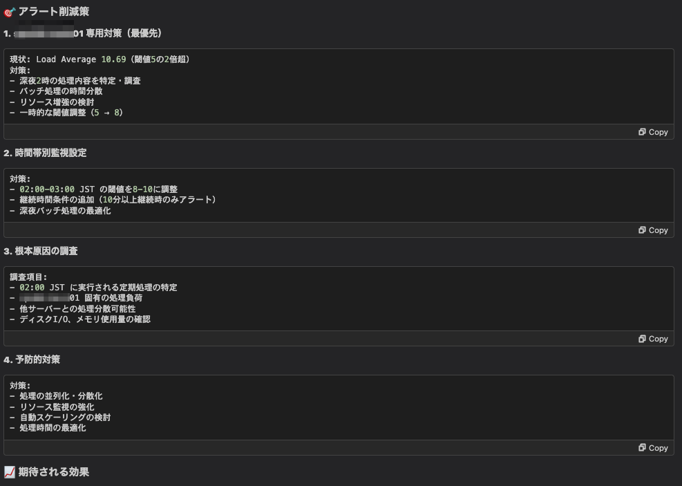 このように変更すれと、毎朝これをAIに聞くだけで、前日からのアラート確認が一瞬で完了します。