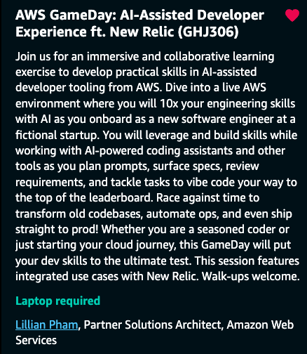 AWS GameDay: AI-Assisted Developer Experience ft. New Relic (GHJ306)
