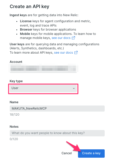 New Relic MCPサーバの認証方法は2つの方法があります。