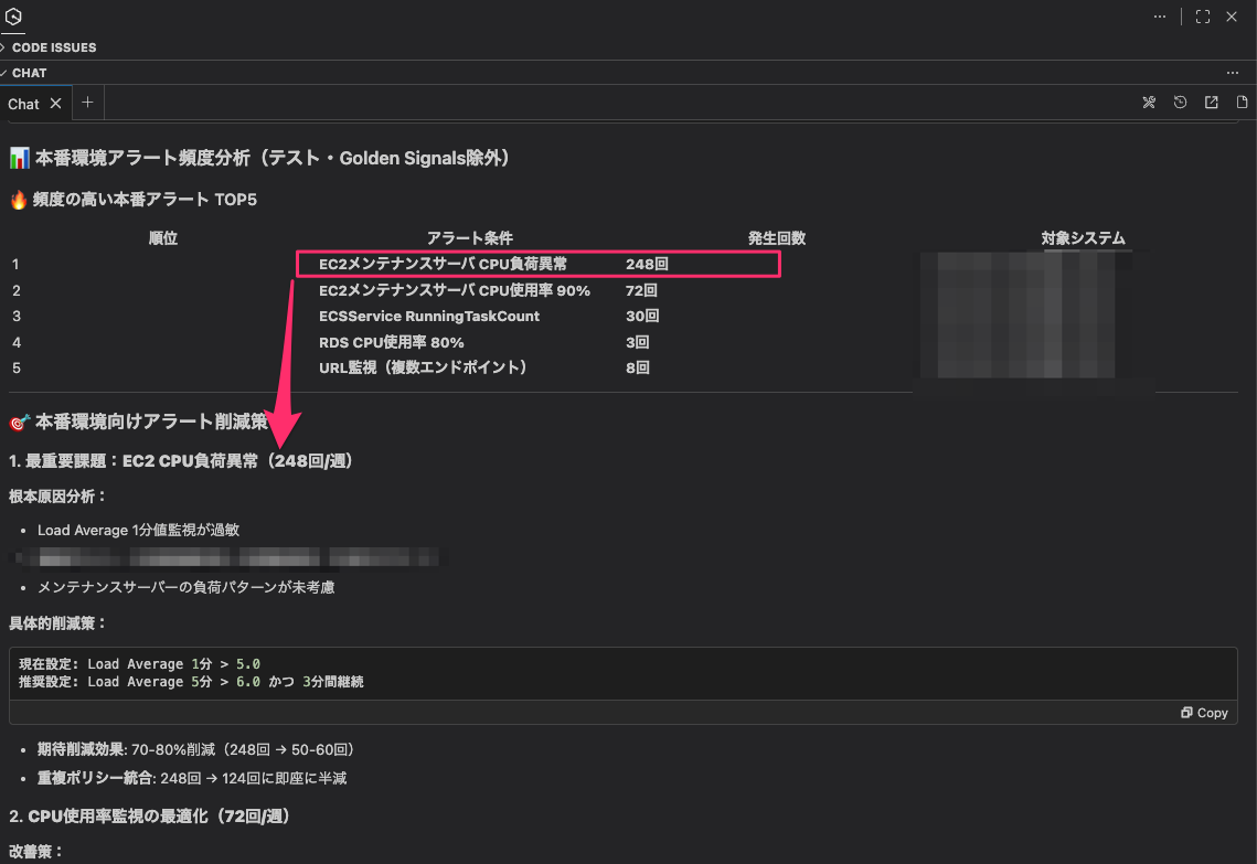このように変更すれと、毎朝これをAIに聞くだけで、前日からのアラート確認が一瞬で完了します。