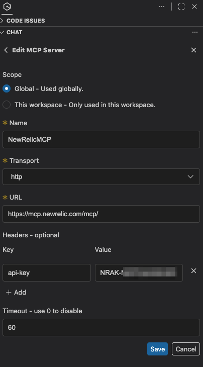 NewRelicMCP※好きな名前を設定ください - Transport:
