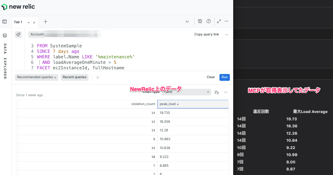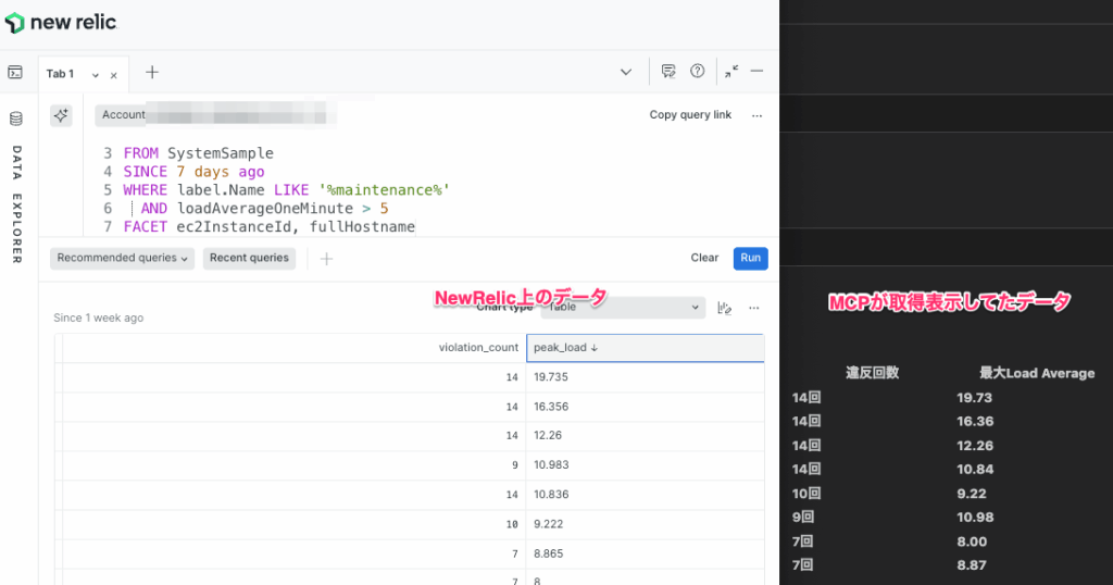 - NRQLクエリを自動生成・実行し、データの取得・分析