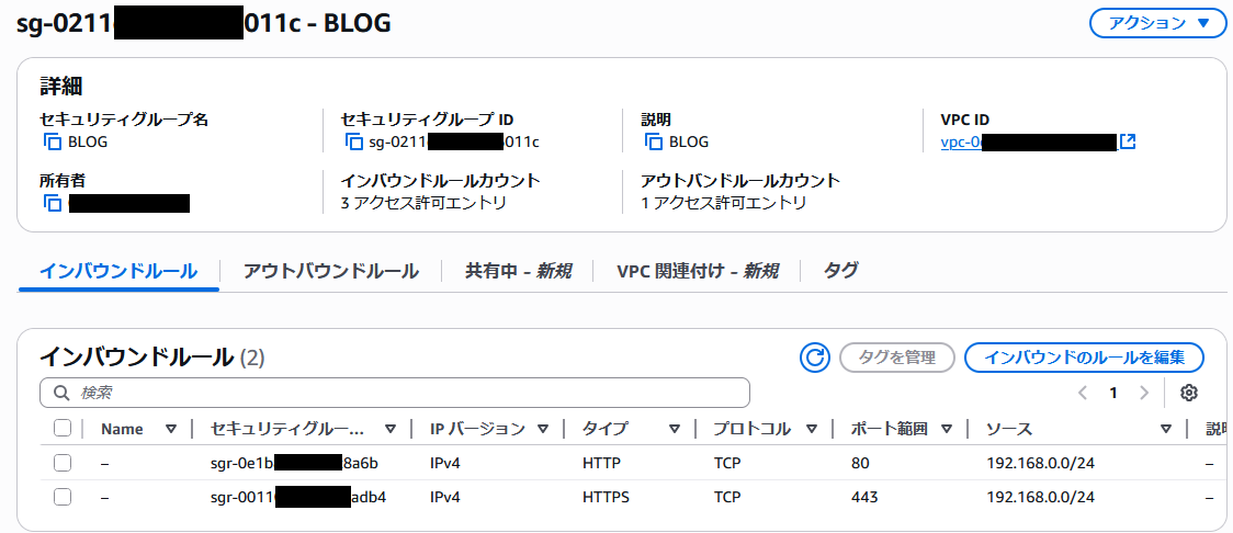変更セット実行後のセキュリティグループの状態は、それぞれこうなりました。