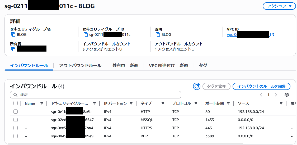 実利用はしないセキュリティグループですし、せっかくなので、普段ならまずやらない変更を加えてみましょう。