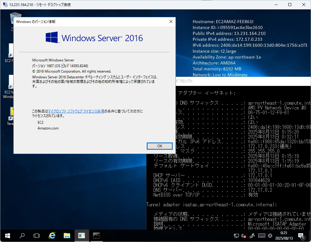 (RDP接続はできないが、進行中。気になる場合はインスタンスのスクリーンショット機能で確認できます)
