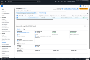 本記事執筆時は snap-026c037d2821a2ac8 でした。今回EC2インスタンスが1aのAZにあるため、